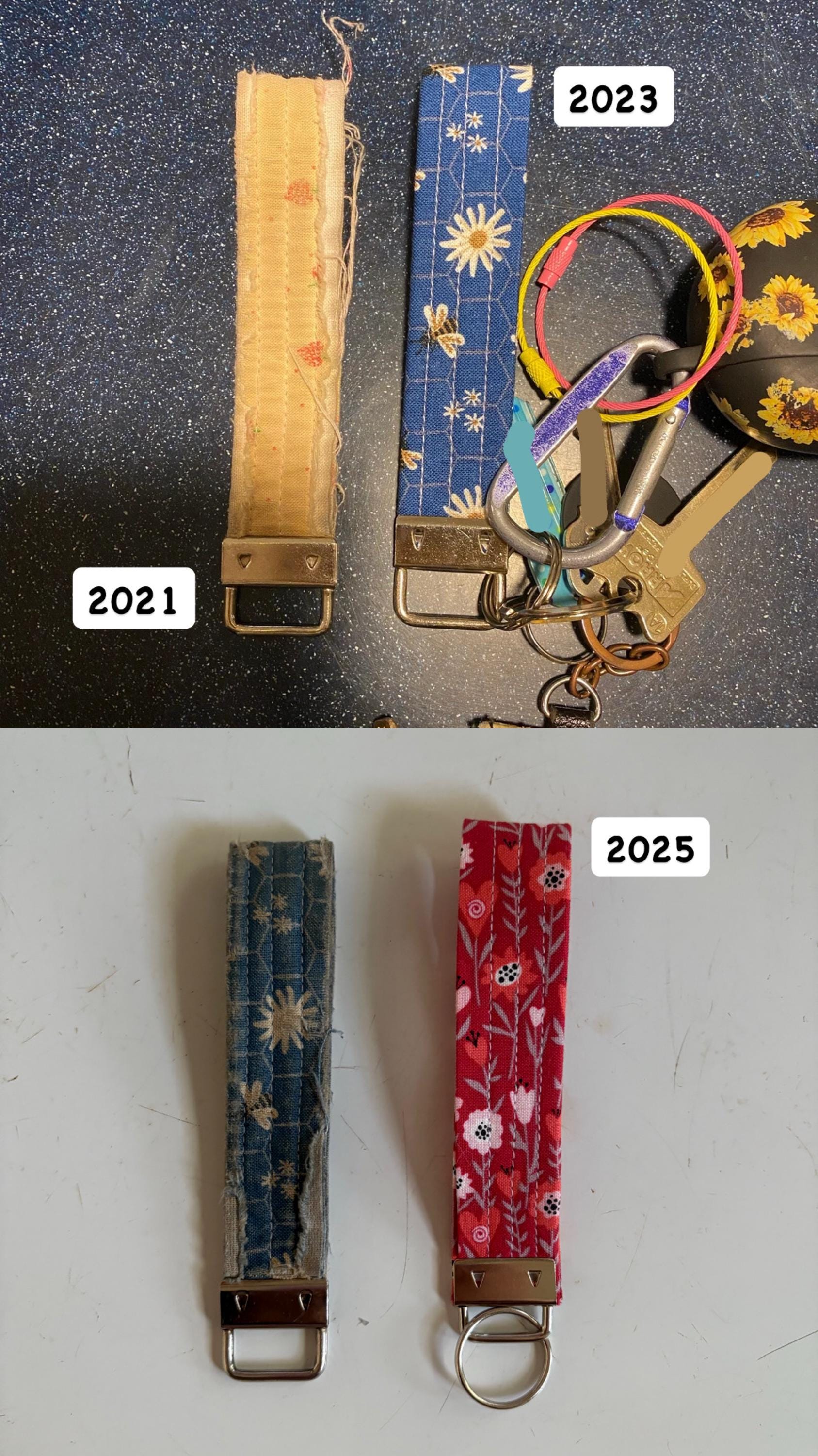 This 100% cotton keychain is a perfect way to find your keys! 100% cotton with a medium weight lining to keep the shape. Nickle hardware. PATTERN PLACEMENT MAY VARY