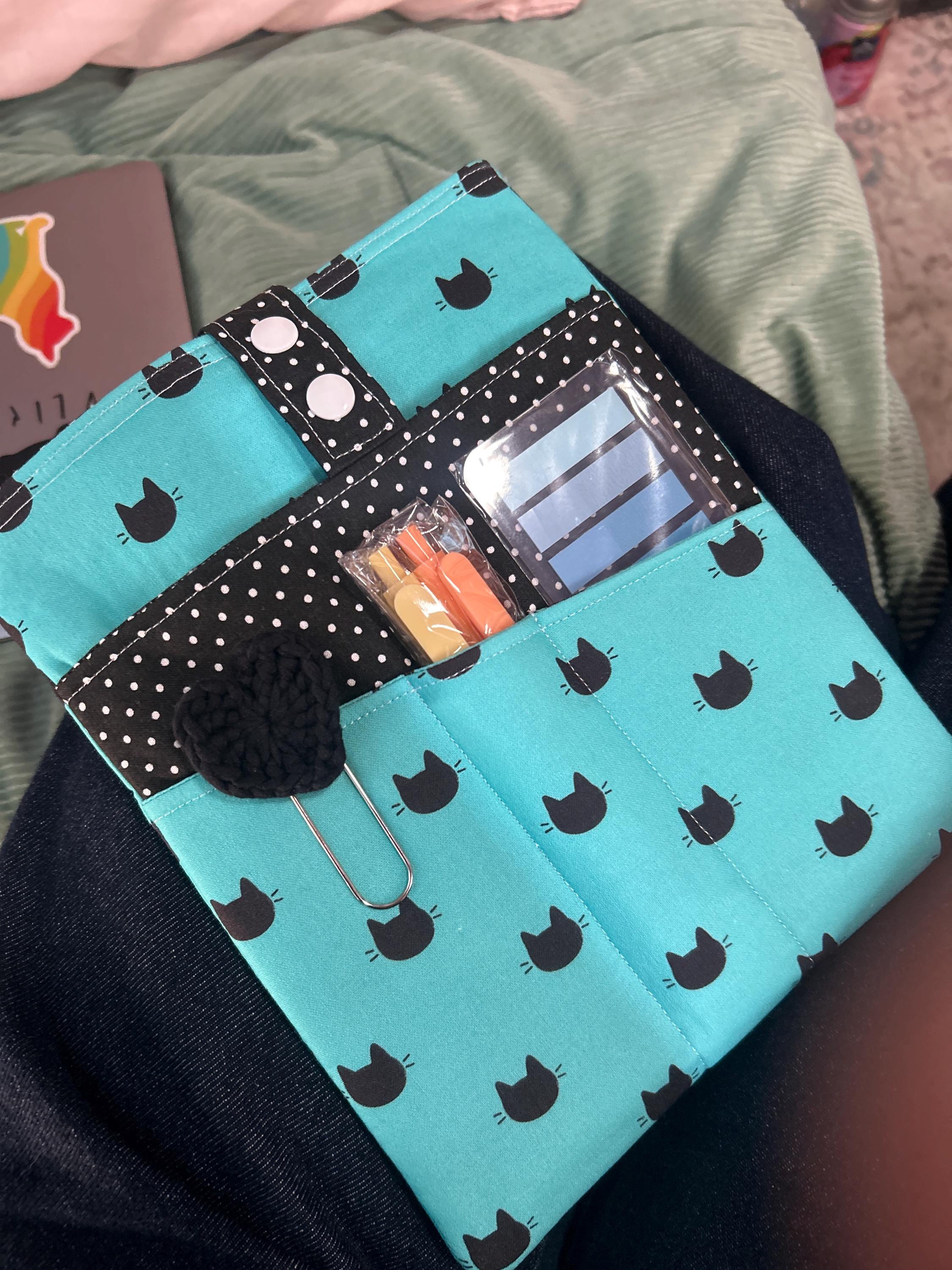 This Book Pocket Pal is perfect for keeping your book cozy along with your pens, papers and stickers. Also great for journaling!