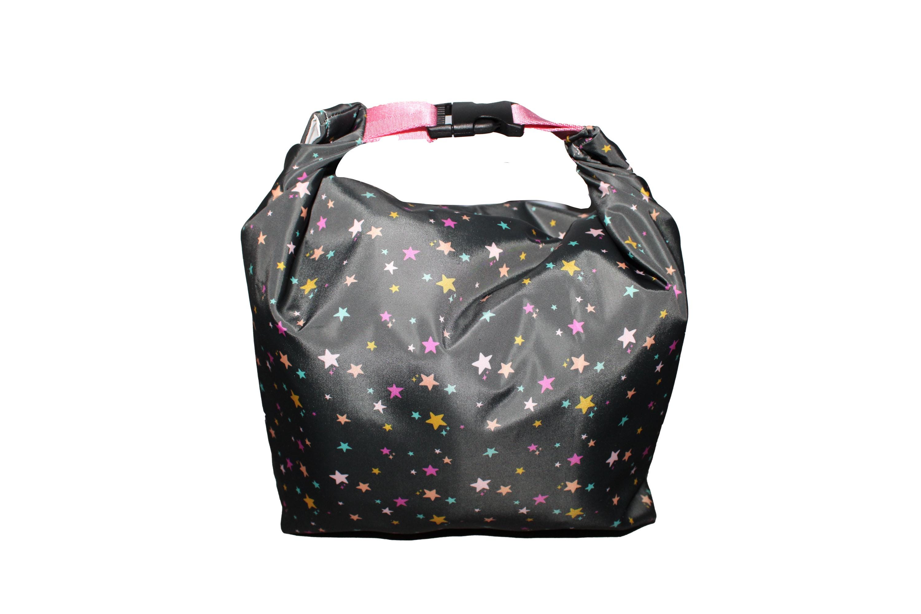 This Water Resistant Bag is great to use as a lunch bag, at the beach, for dirty laundry or whatever your heart desires. Simply put in your goodies, roll down the top and clip into place. Made with high quality products!