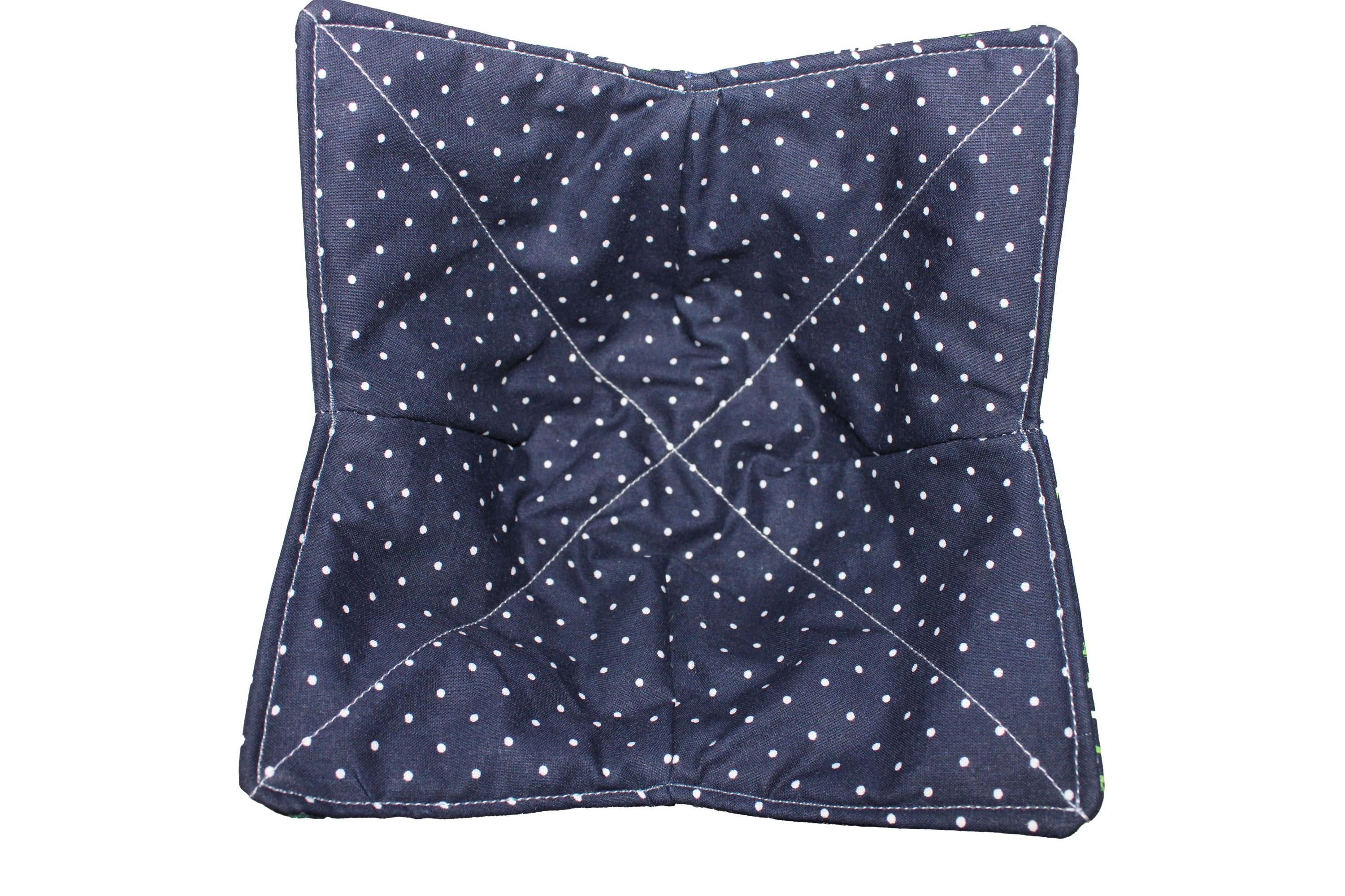 This reversible cozy is great for hot or cold items. Put bowl inside cozy to microwave your food. Remove by lifting by tips of cozy. A wonderful way to protect your hands, table tops and counter tops. Also can be used to eat cold food like ice cream to keep your hands from getting cold.